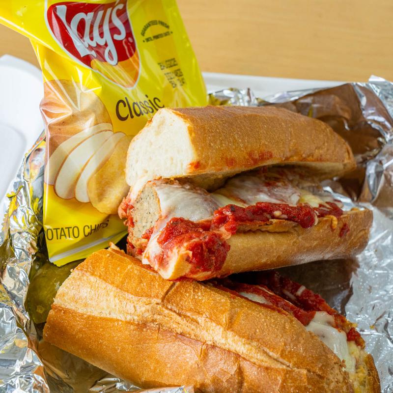 Rich marinara, meatballs, mozzarella, and smothered in parmesan cheese.