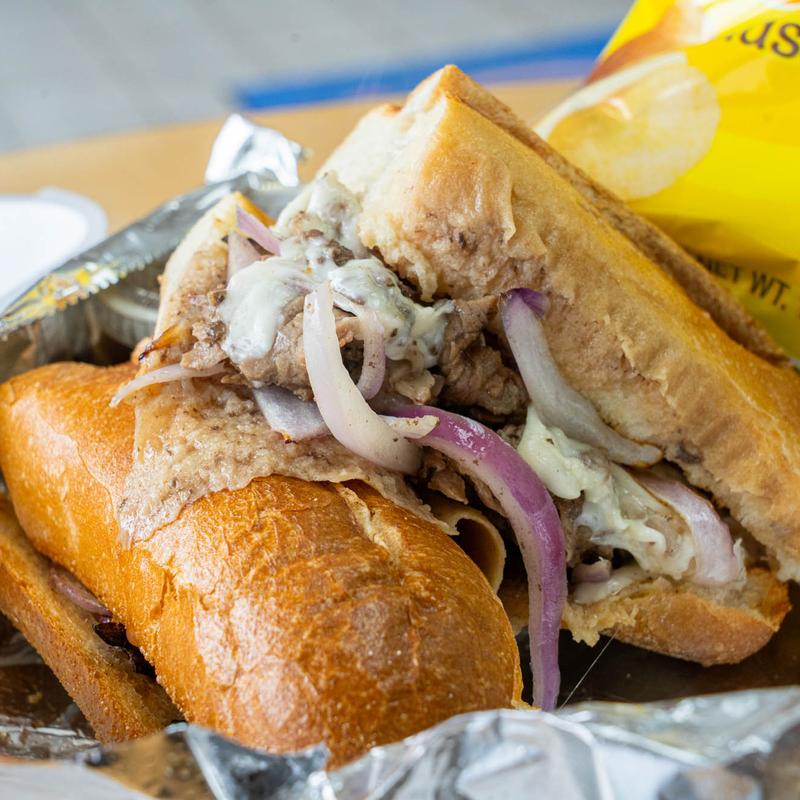 Oven-roasted prime rib shaved thin, with onions, topped with mozzarella, then toasted. Served with a side of au jus for dipping.