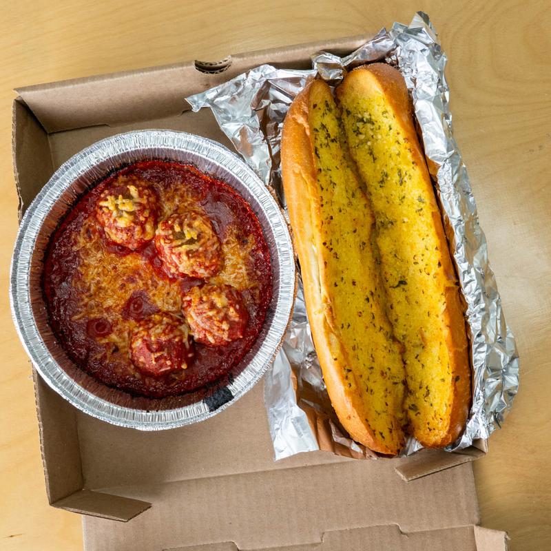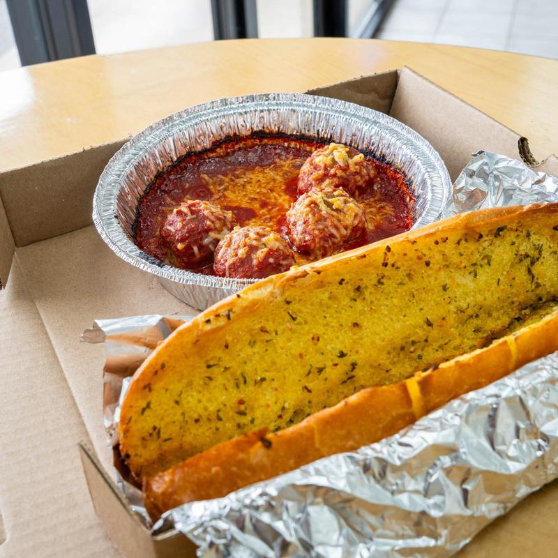 Four Italian meatballs smothered in rich red sauce and parmesan cheese. Served with a whole garlic loaf for dipping.