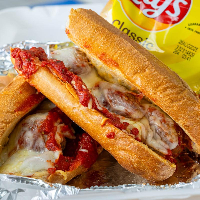 Meatballs smothered in marinara, mozzarella, and parmesan cheese.